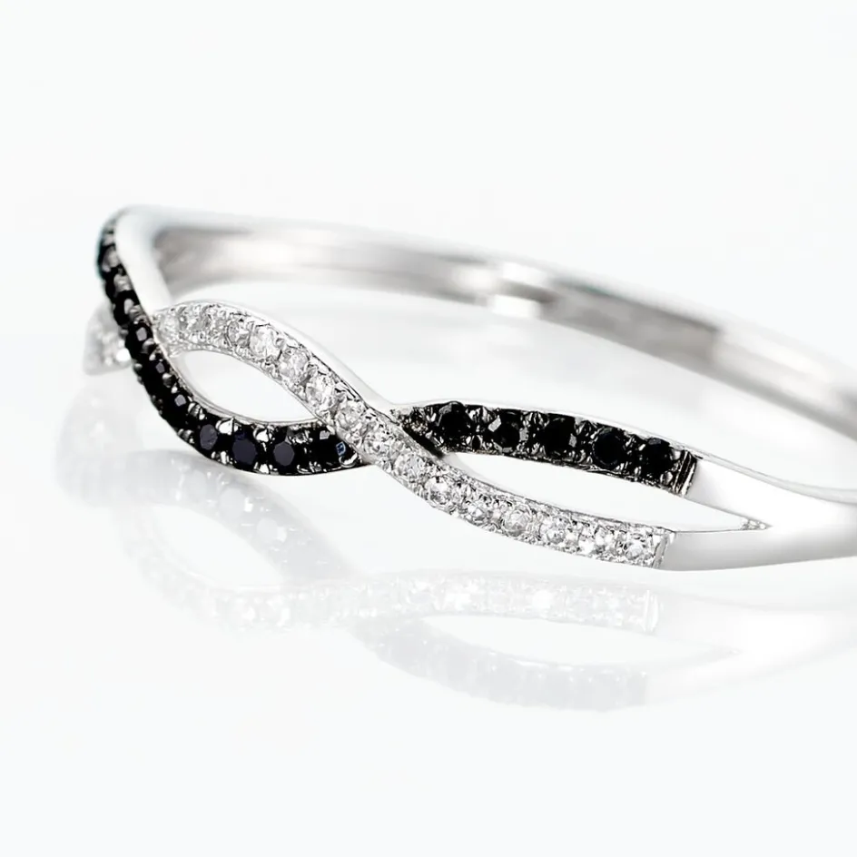 Bague Or Blanc 375/1000 Vagues Diamants Noirs Et Blancs