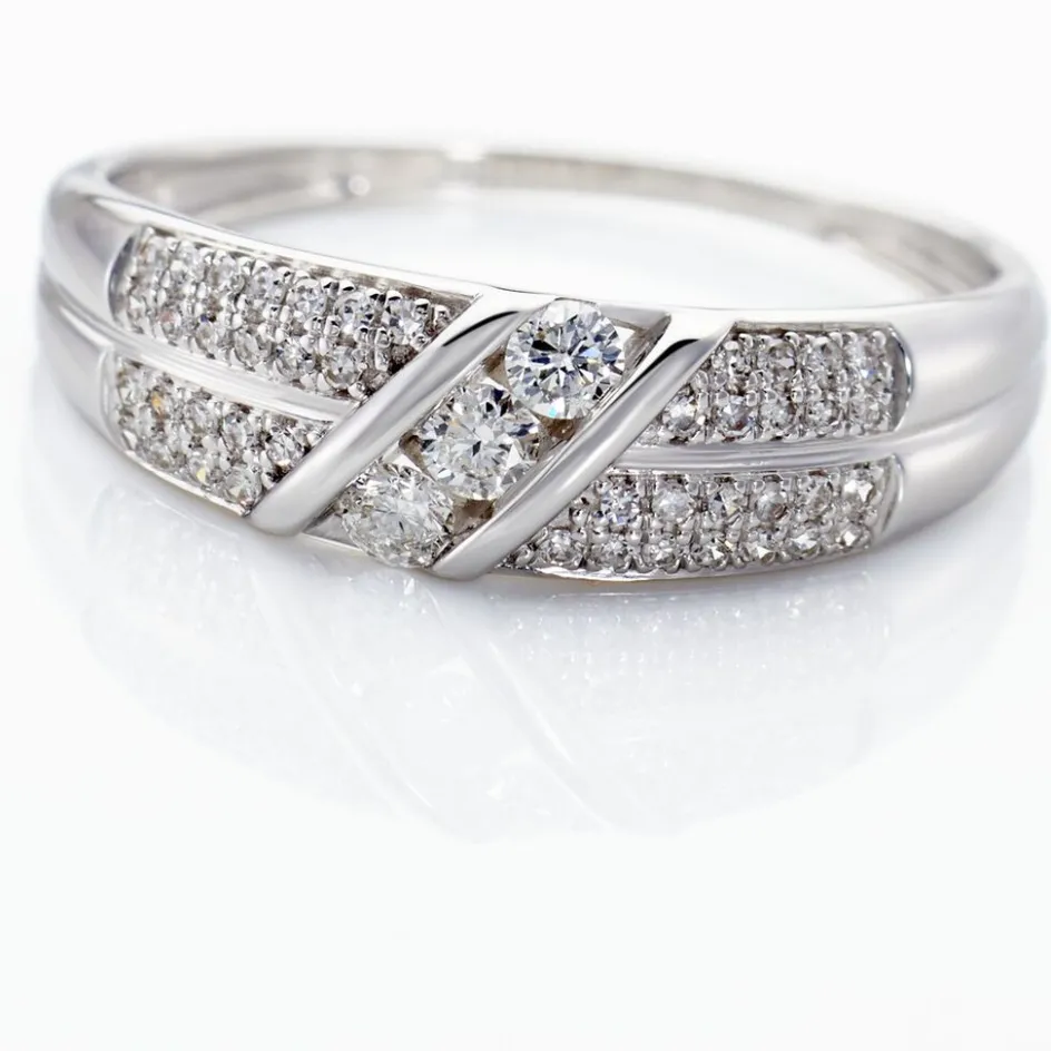Bague Or Blanc 375/1000 Trilogie Diamants 0.11cts Accompagne Diamants