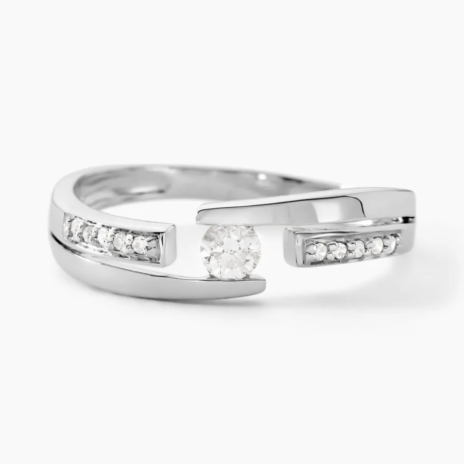 Solitaire Or Blanc 375/1000 Diamant Rond Serti Couteau Accompagne Diamants