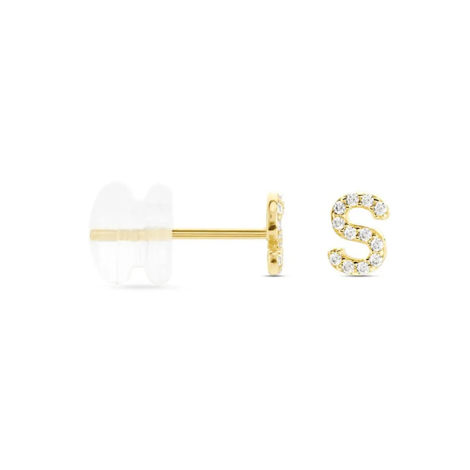 Boucle D’oreille Puce Unitaire Or Jaune 375/1000 Lettre S Oxydes De Zirconium