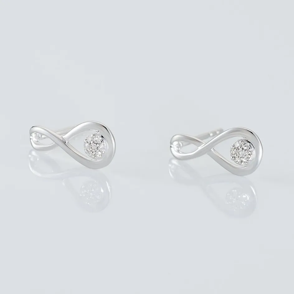 Boucles D’oreilles Or Blanc 375/1000 Forme Goutte Huit Diamants 42cm