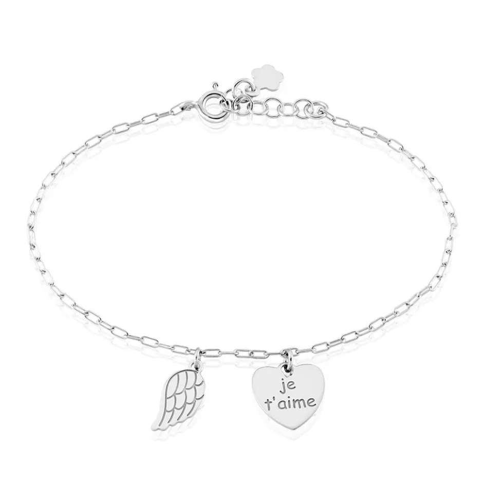 Bracelet Argent 925/1000 Coeur Je T’aime Maille Cheval 18cm