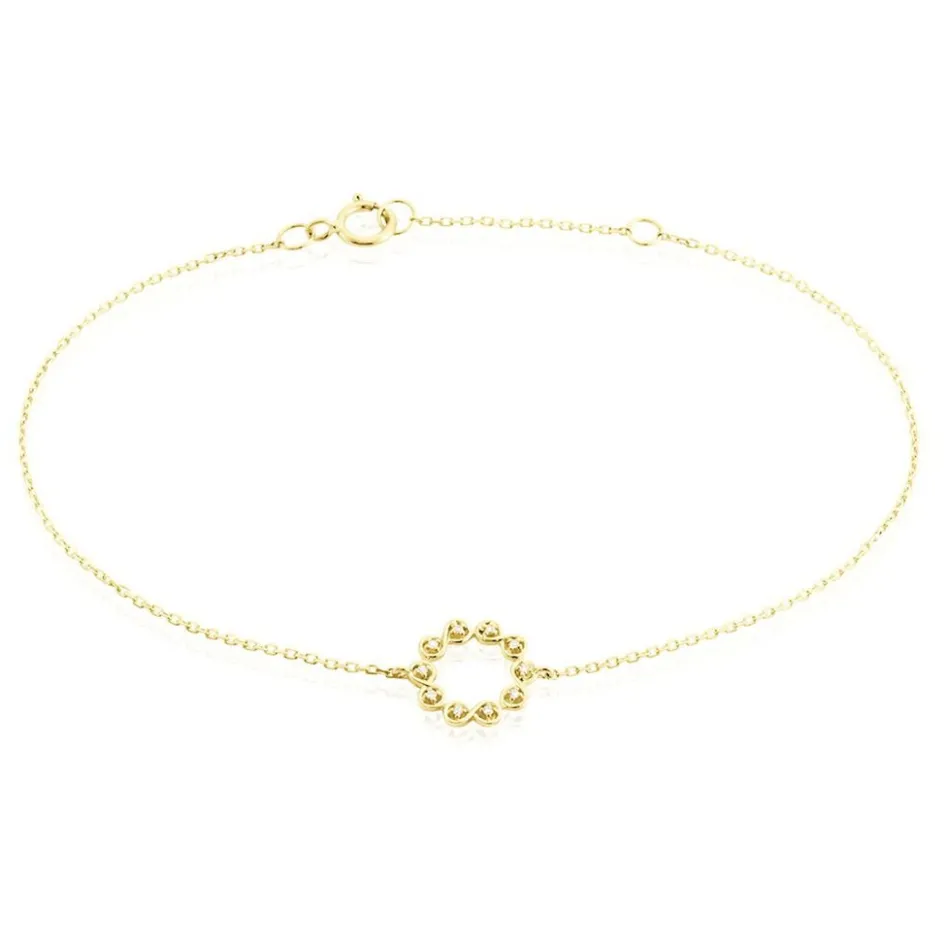 Bracelet Or Jaune 375/1000 Cercle Diamants Maille Forcat 16+2cm
