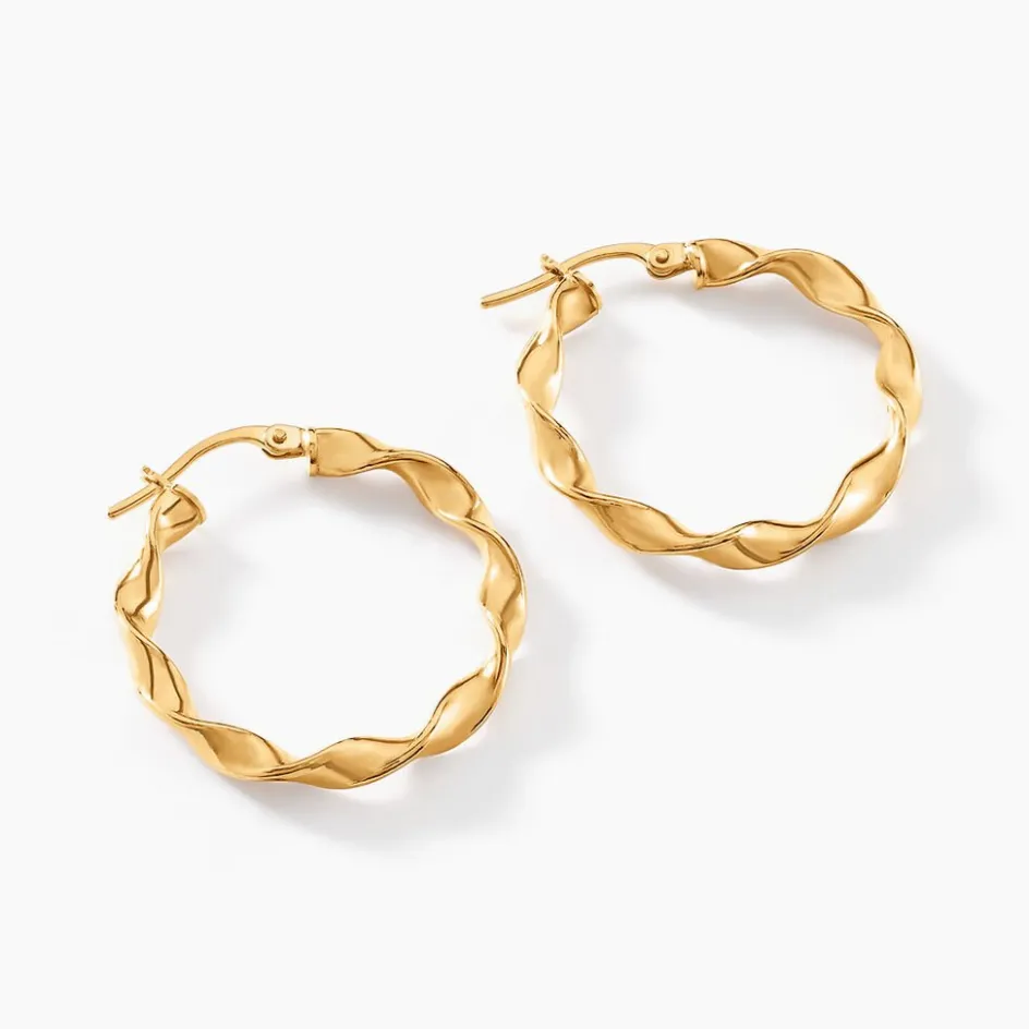 Creoles Or Jaune 750/1000 Rondes Fil Rond Torsade 3.1mm Largeur Diametre 20mm