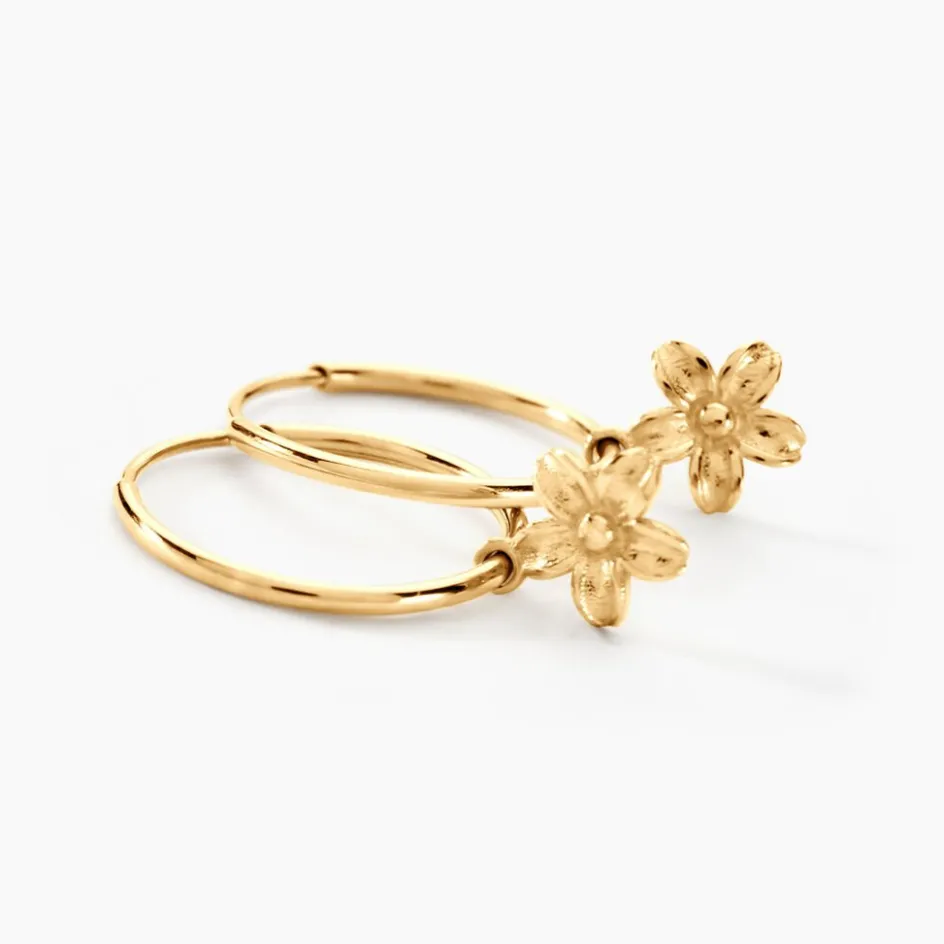 Creoles Or Jaune 375/1000 Pampille Fleur Fil Rond Flexible Lisse Diametre 12mm