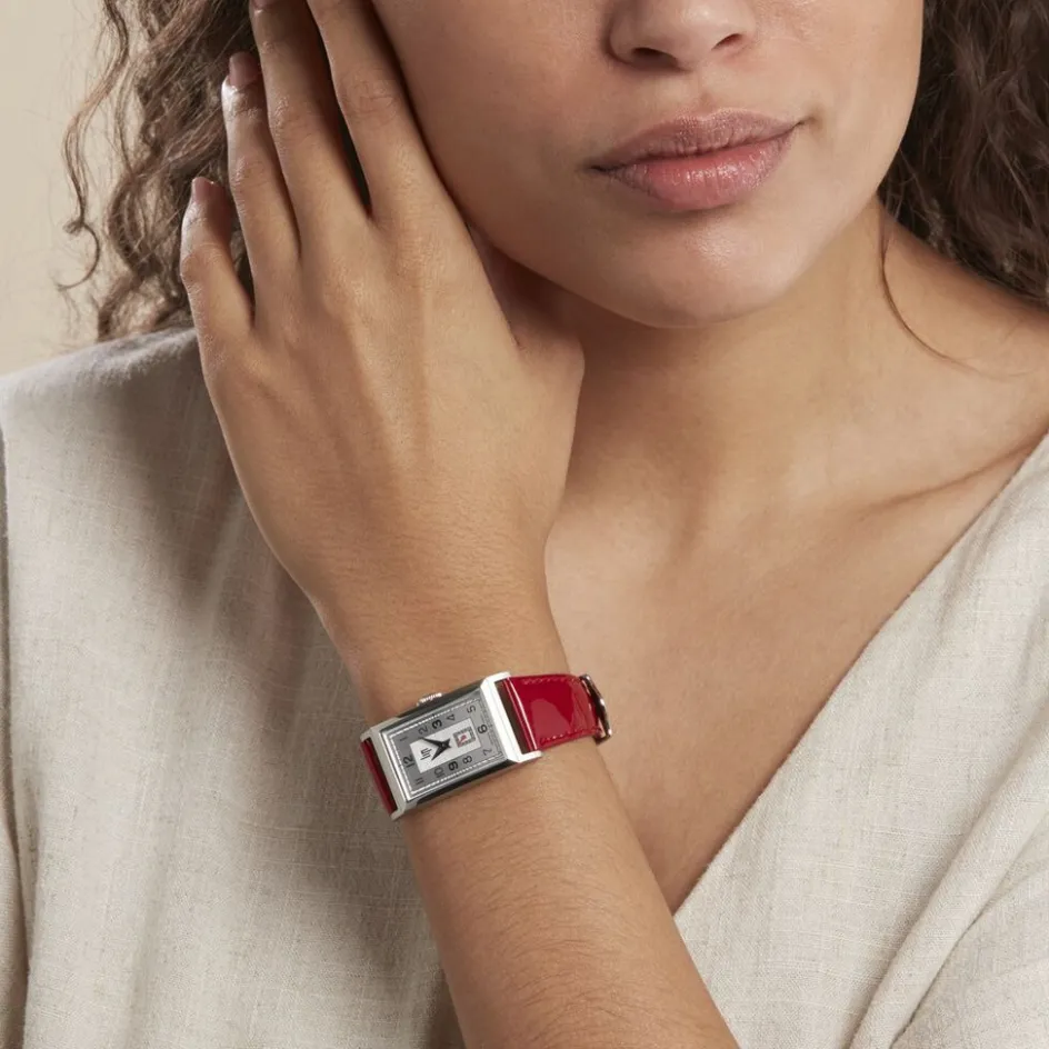 Montre Lip Churchill T18 Acier Rectangulaire Quartz 21.2mm X 38.5mm Fond Argenté Bracelet Cuir Rouge 671409