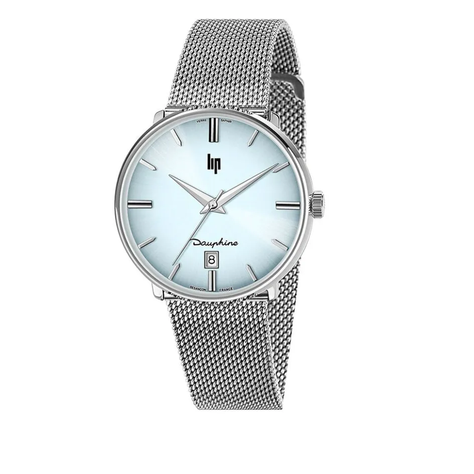Montre Lip Dauphine Acier Argente Ronde Quartz 38mm Fond Bleu Bracelet Acier Argente Milanais 671954