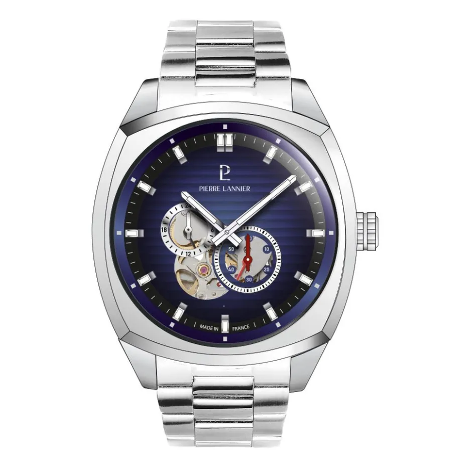Montre Pierre Lannier Arcadius Acier Inoxydable Argenté Automatique Ronde 42,5Mm Fond Bleu Coeur Ouvert Bracelet Acier Inoxydable Argenté 328F161