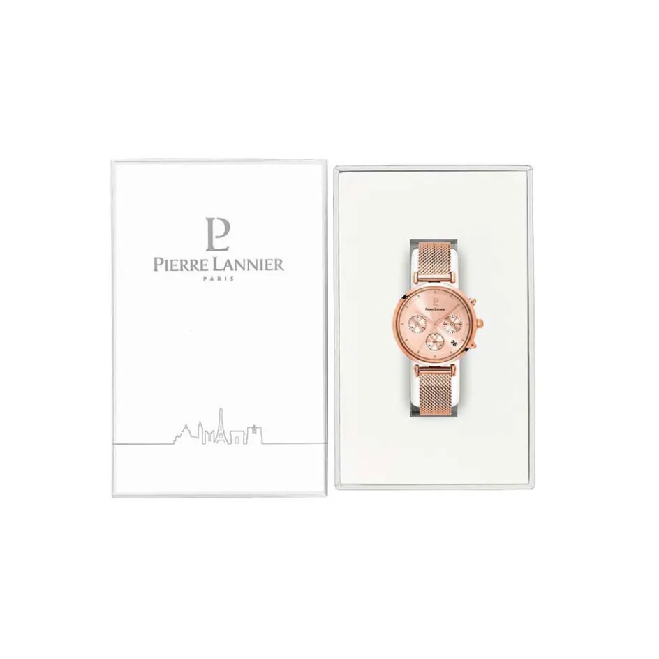 Montre Pierre Lannier Lutecia Acier Doré Rose Ronde Quartz 37mm Fond Rose Bracelet Acier Maille Milanaise Doré Rose 083j958