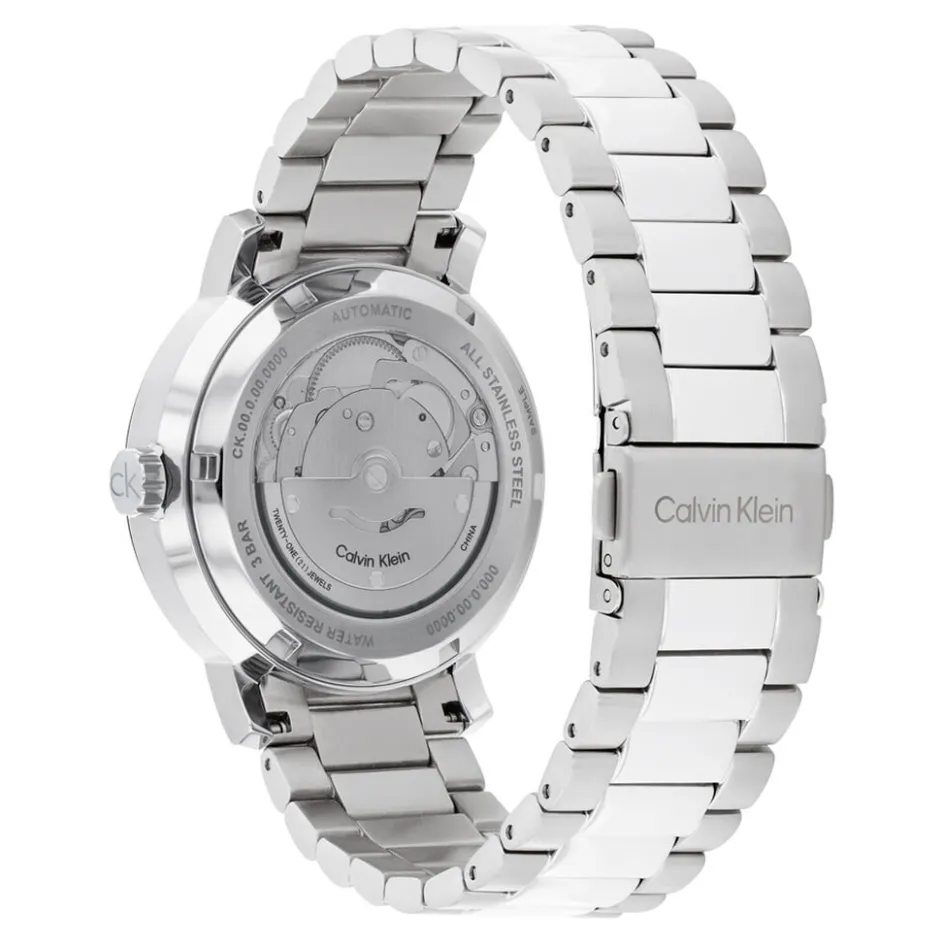 Montre Calvin Klein Iconic Automatic Acier Argenté Ronde Automatique 40mm Fond Bleu Bracelet Acier Argenté 25300019