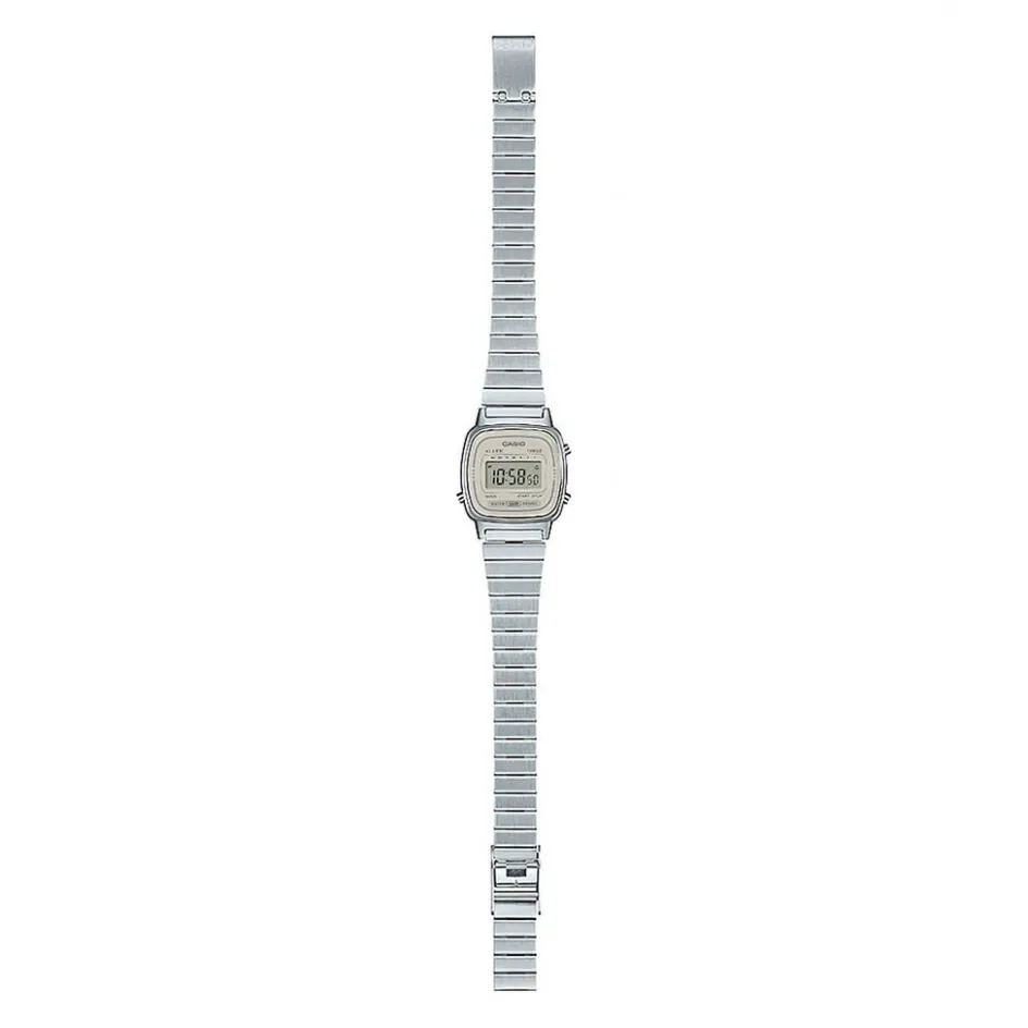 Montre Casio Collection Vintage Resine Argente Carre Quartz 24.6mm Fond Gris Bracelet Acier Argente Crante La670wea-8aef