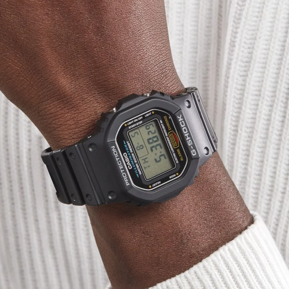 Montre Casio G-shock Black & White Acier Noir Ronde Quartz 42mm Fond Gris Bracelet Caoutchouc Noir Dw-5600e-1ver