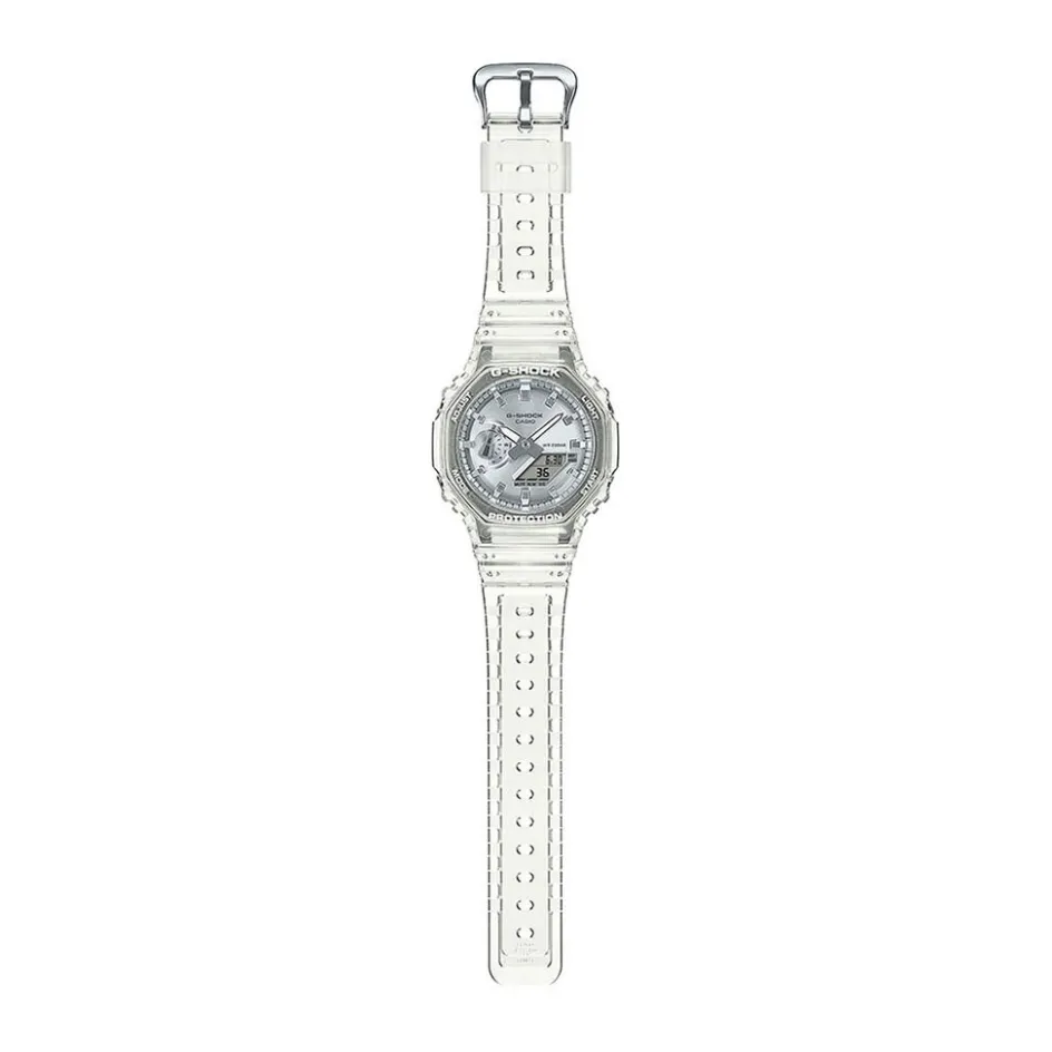 Montre Casio G-shock Acier Argente Quartz Anadigitale Ronde 45.4mm Fond Argenté Bracelet Résine Blanc Transparent Ga-2100bm-7a8er