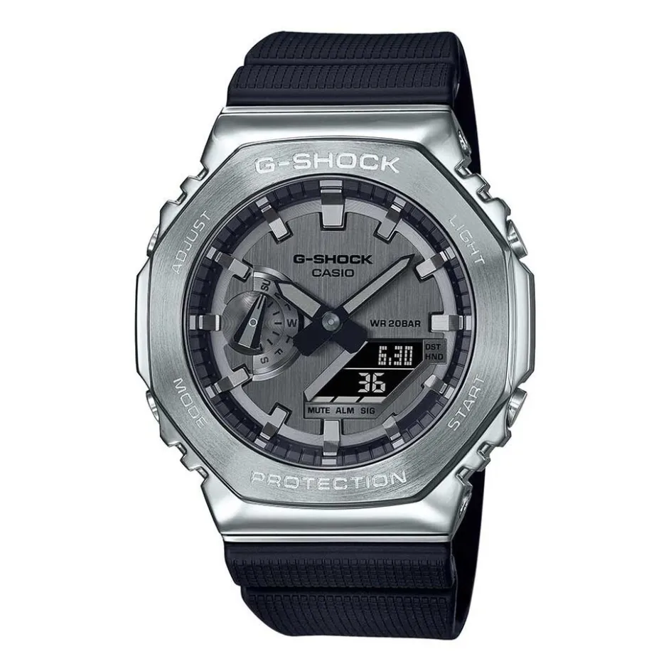 Montre Casio G-Shock Acier Ronde Anadigitale 49 Mm Fond Gris Bracelet Résine Noir 20atm – GM-2100-1AER
