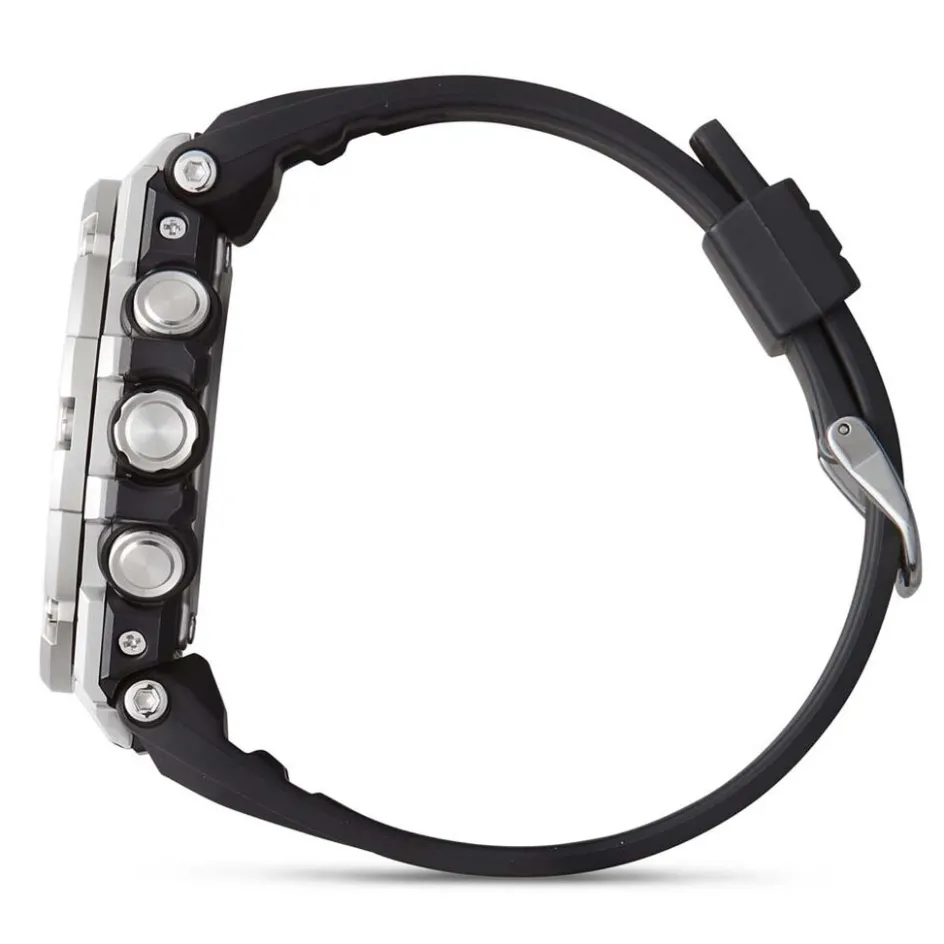 Montre G-shock Premium G-steel Acier Argenté Ronde Quartz 53.8mm Fond Noir Bracelet Résine Noir Gst-b100-1aer