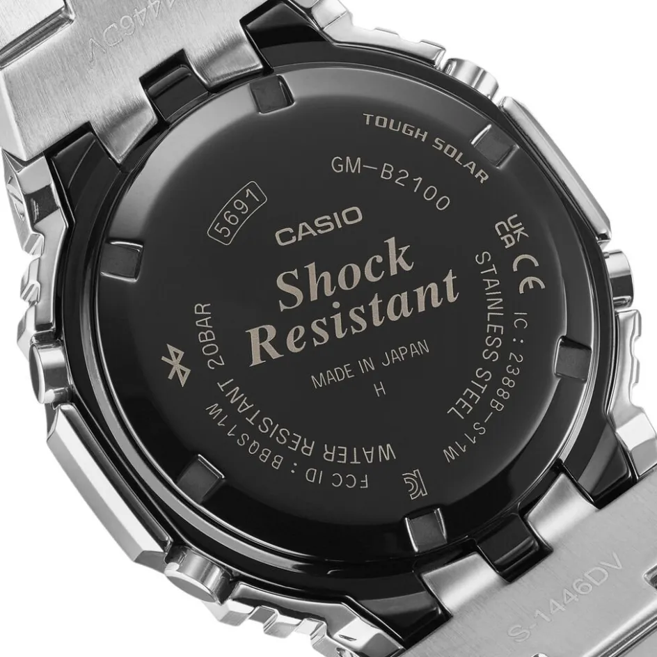 Montre Casio G-shock Premium Acier Argenté Ronde Quartz Solaire 44.4mm Multifonctions Fond Rose Bracelet Acier Argenté Gm-b2100ad-5aer