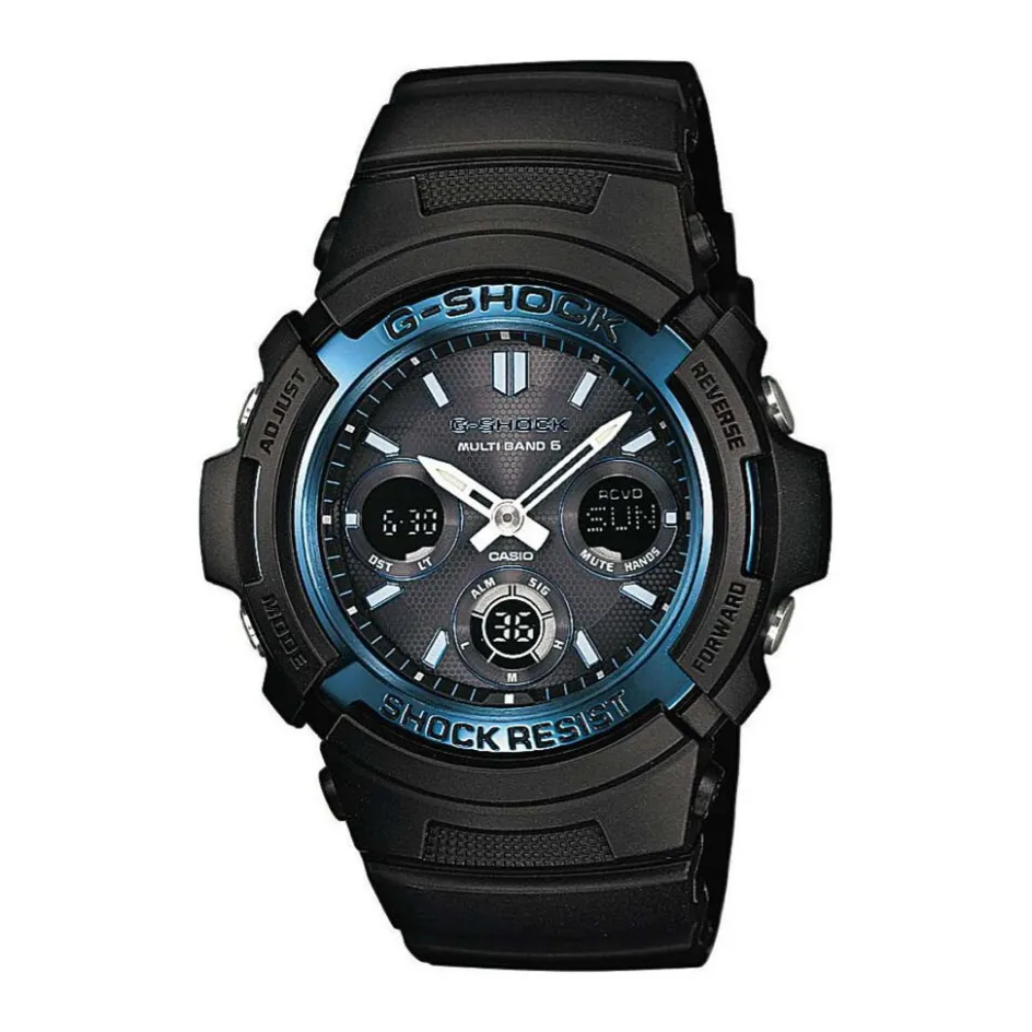 Montre Casio G-shock Solaire Résine Noir Ronde Quartz Multifonction 52mm Fond Noir Bracelet Résine Noir Awg-m100a-1aer