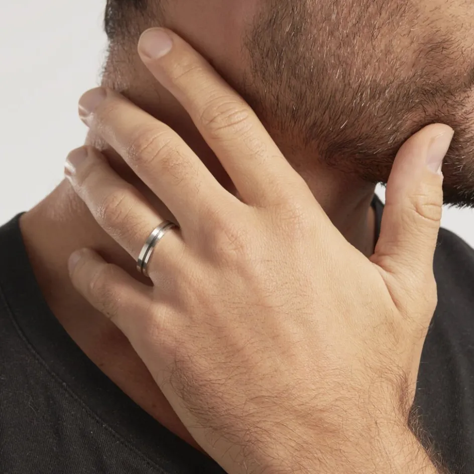 Alliance Or Blanc 375/1000 Et Carbone Telio 4mm