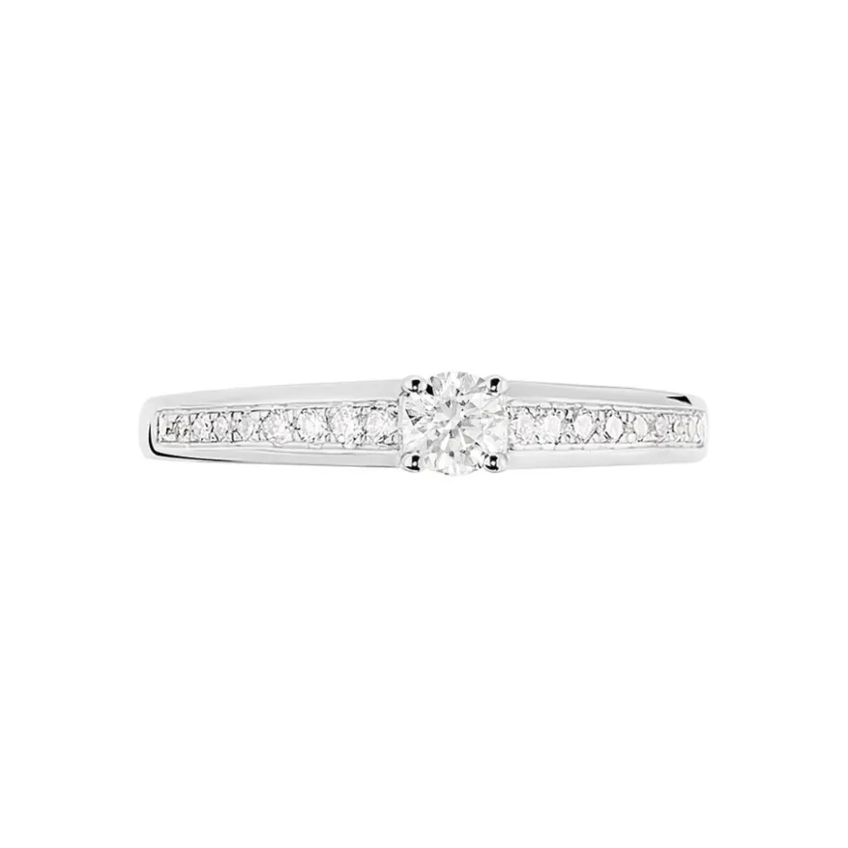 Bague Solitaire Or Blanc 375/1000 Diamant 0.18cts Serti 4 Griffes Corps De Bague Accompagne Diamants