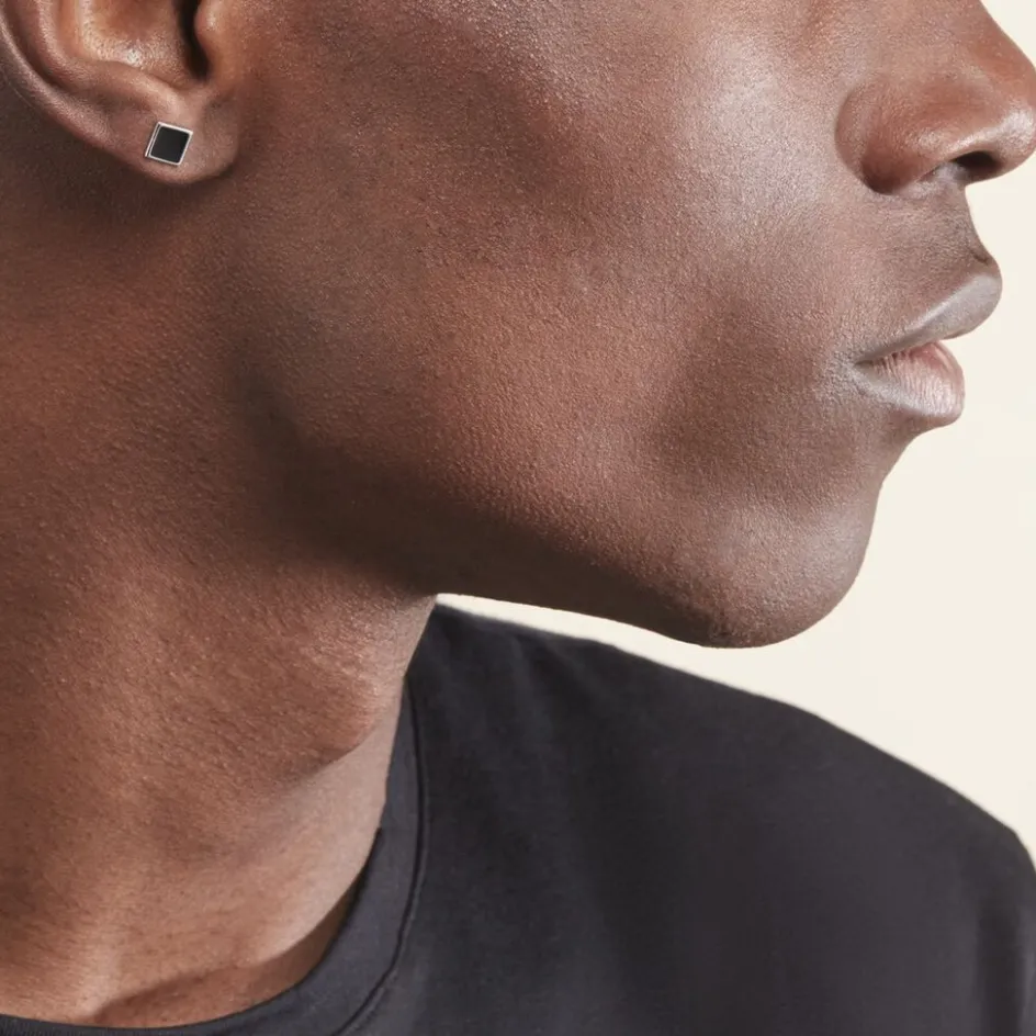 Boucle D’oreille Unitaire Argent Blanc 925/1000 Carre Email Noir