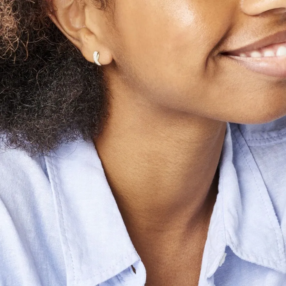 Boucles D’oreilles Or Jaune 375/1000 Avec Poussette Silicone Oxydes De Zirconium Entrelaces