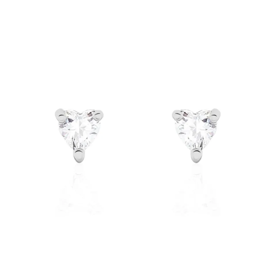 Boucles D’oreilles Puces Argent Blanc 925/1000 Coeurs Oxydes De Zirconium