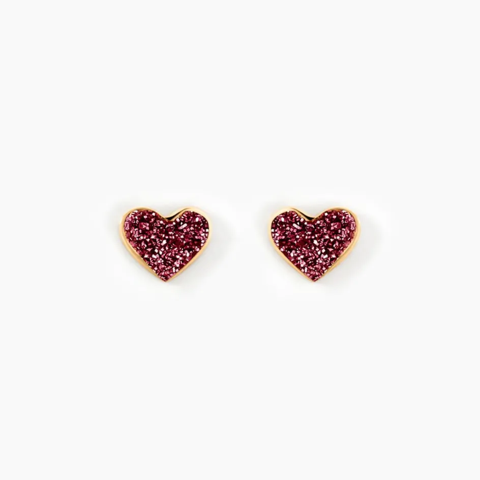 Boucles D’oreilles Or Jaune 375/1000 Puces Motifs C艙urs Glitter Rose