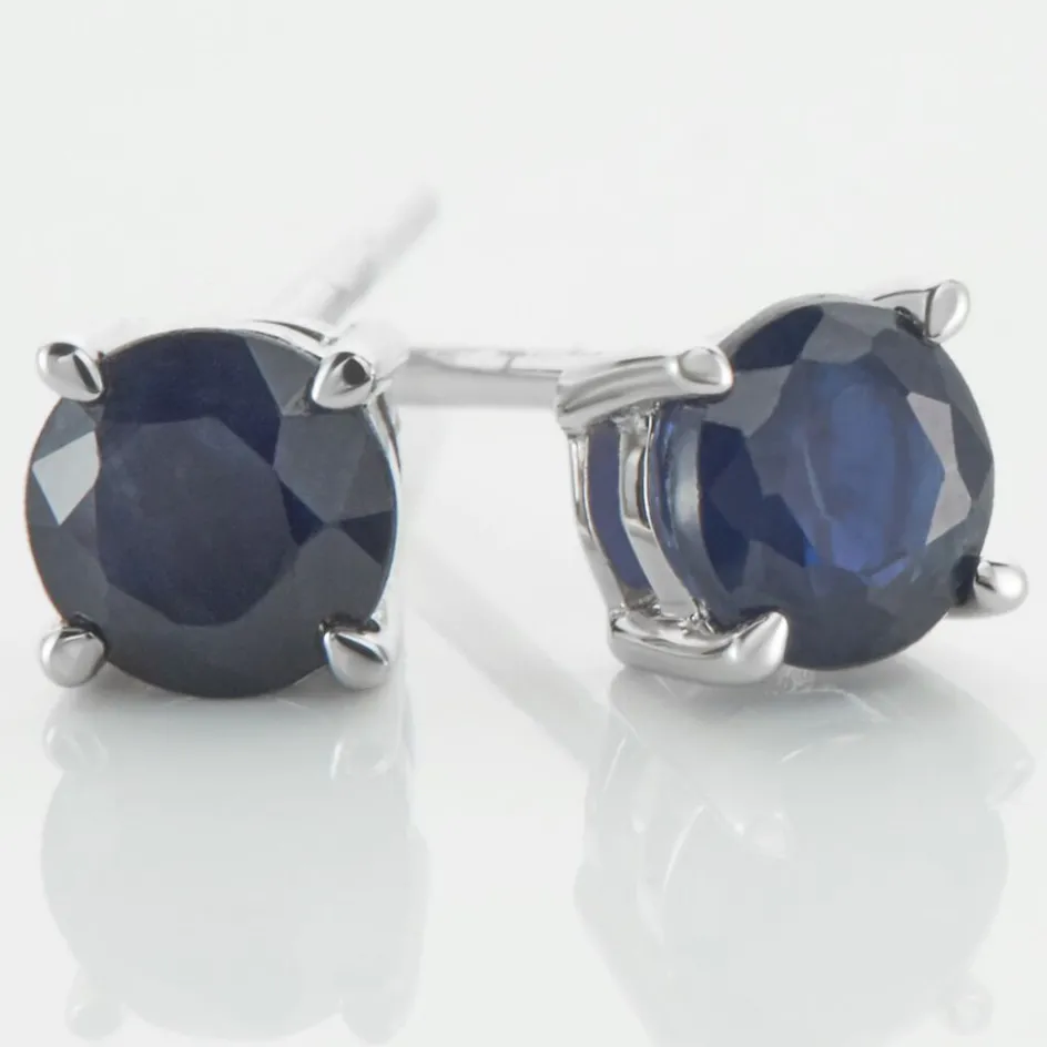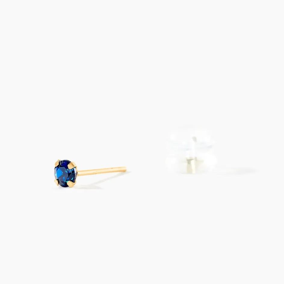 Boucles D’oreilles Or Jaune 375/1000 Puces Oxyde De Zirconium Bleu Fonce 3mm