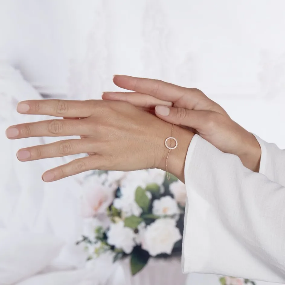Bracelet Argent Rose 925/1000 Motif Cercle Ajoure Pavage Oxydes De Zirconium 18.5cm