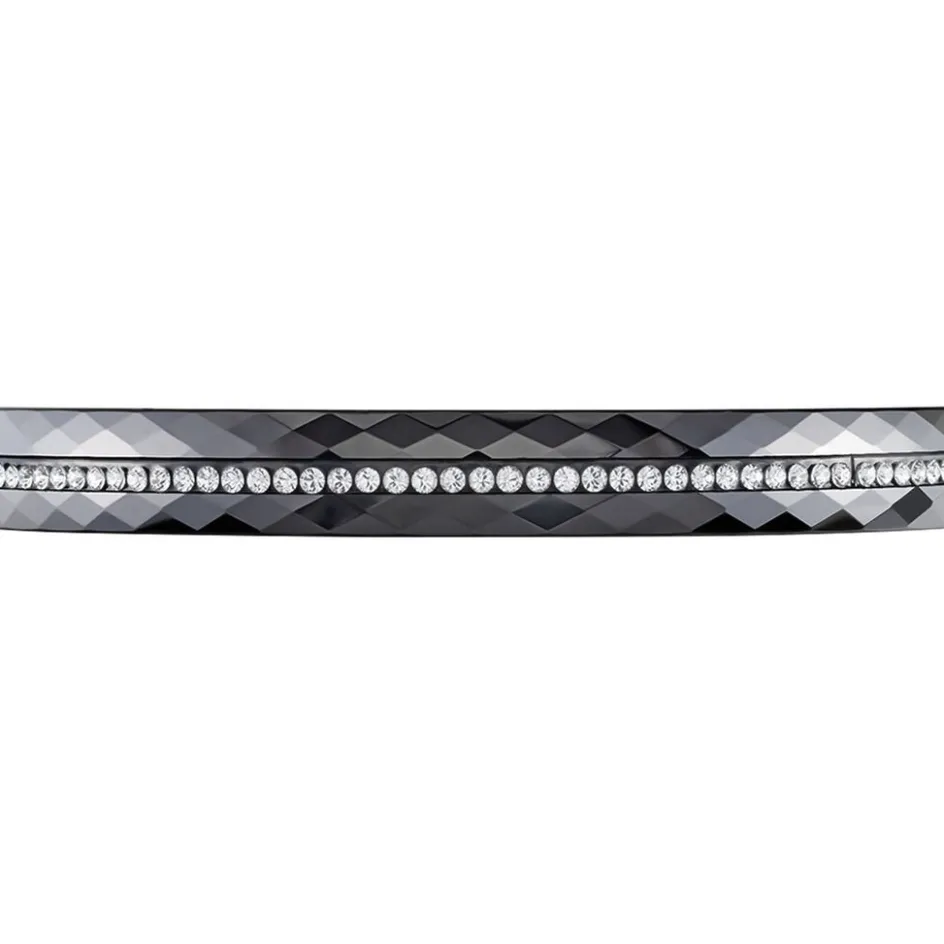 Bracelet Jonc Ceramique Facettee Noire Rang Pierres Blanches 6mm