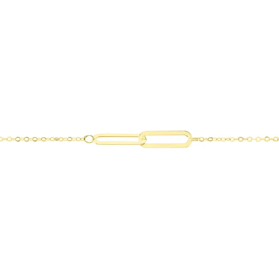 Bracelet Or Jaune 375/1000 Maillons Ajoures Maille Forcat Ronde 18cm