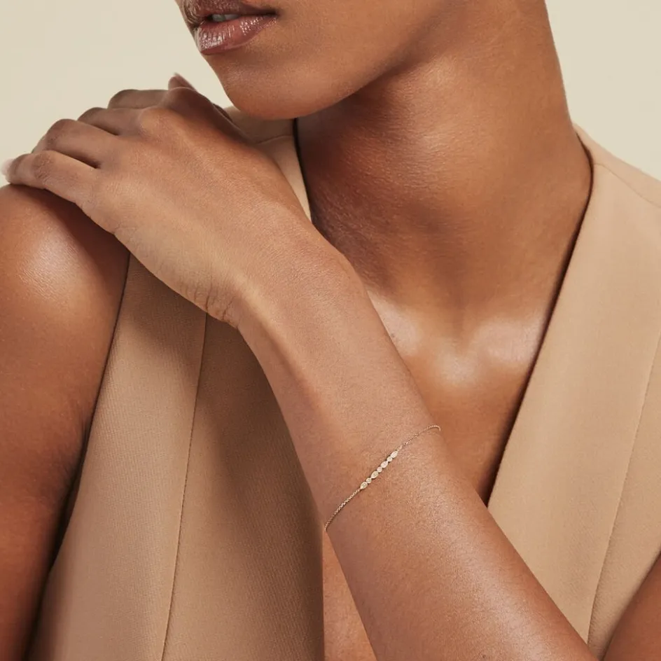 Bracelet Or Jaune 375/1000 Barre Gouttes Et Ronds Effet Perle Pavage Diamants Maille Forcat 16+2cm