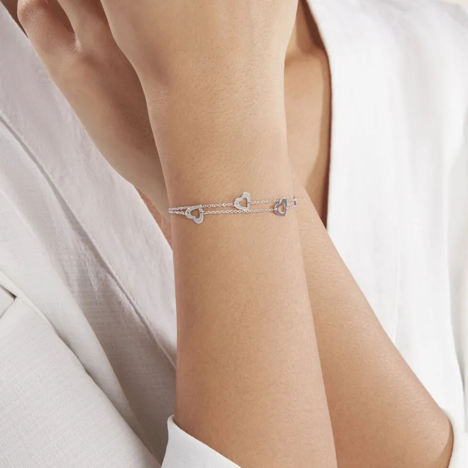 Bracelet Argent Blanc 925/1000 C艙urs Double Mailles Forçat 16cm