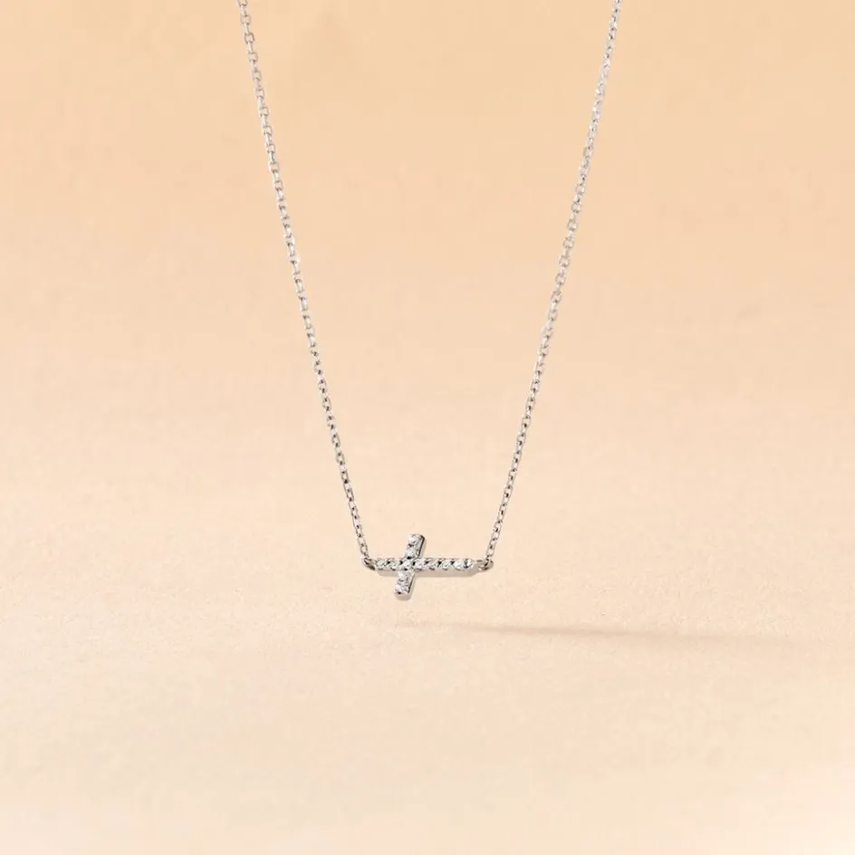 Collier Or Blanc 375/1000 Croix Oxydes De Zirconium Micro Serti Maille Forçat 42cm