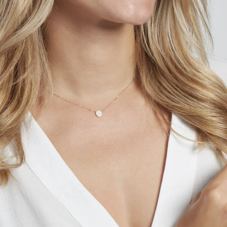 Collier Or Jaune 375/1000 Pastille Ronde Oxyde De Zirconium Maille Forçat 42cm