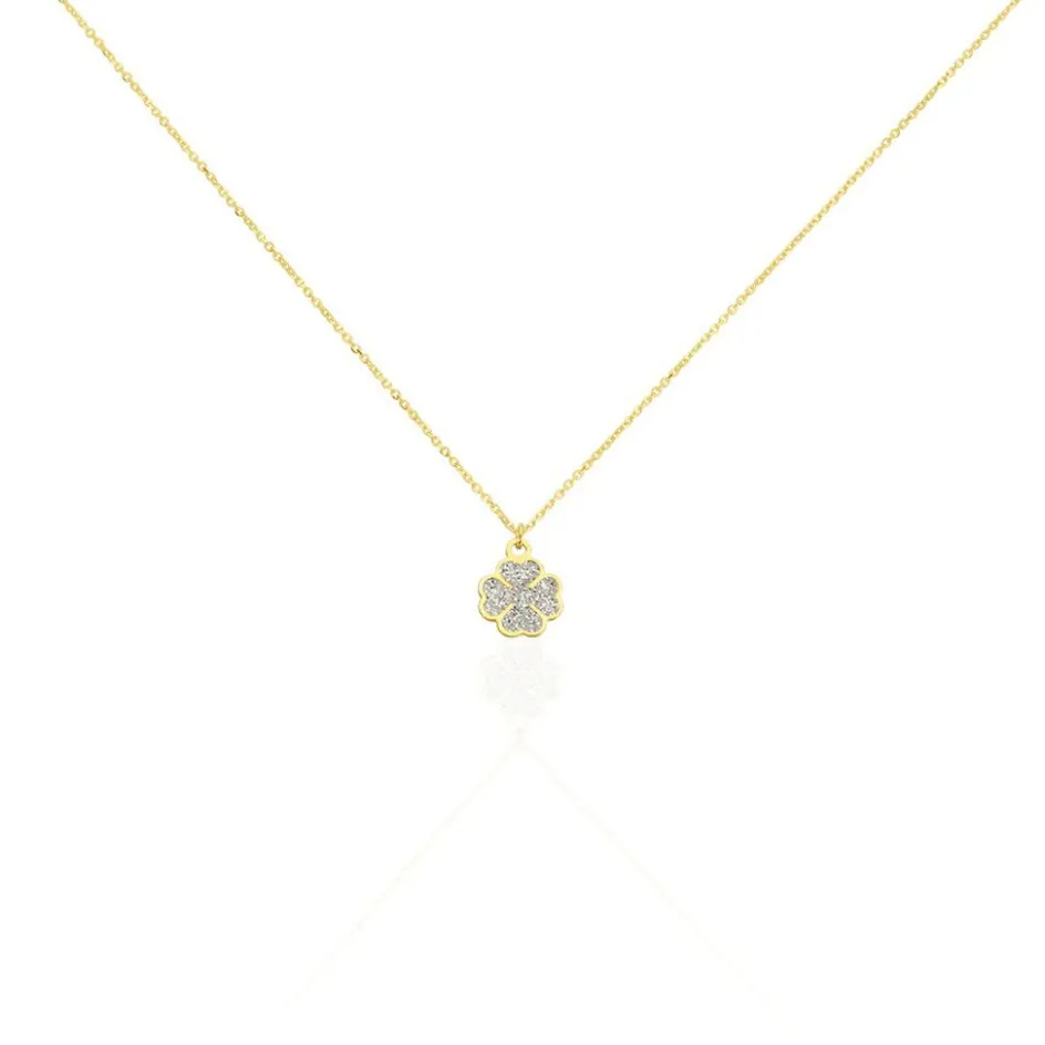 Collier Or Jaune 375/1000 Trefle Glitter Argente Maille Jaseron 40+2cm