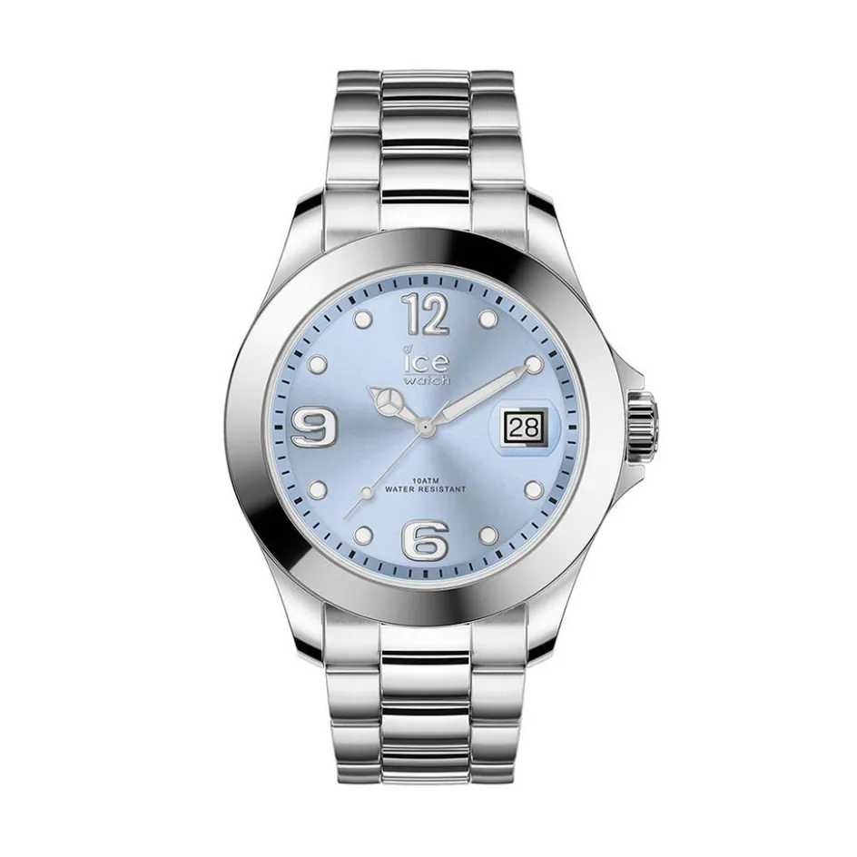 Montre Ice Watch Steel Classic Acier Blanc Ronde Quartz 43mm Fond Bleu Bracelet Acier Blanc 016891