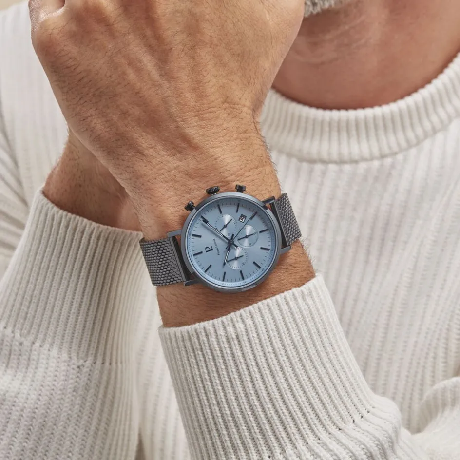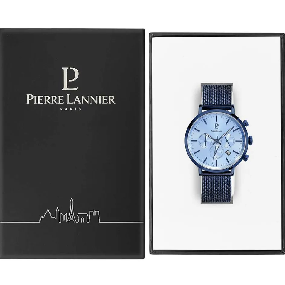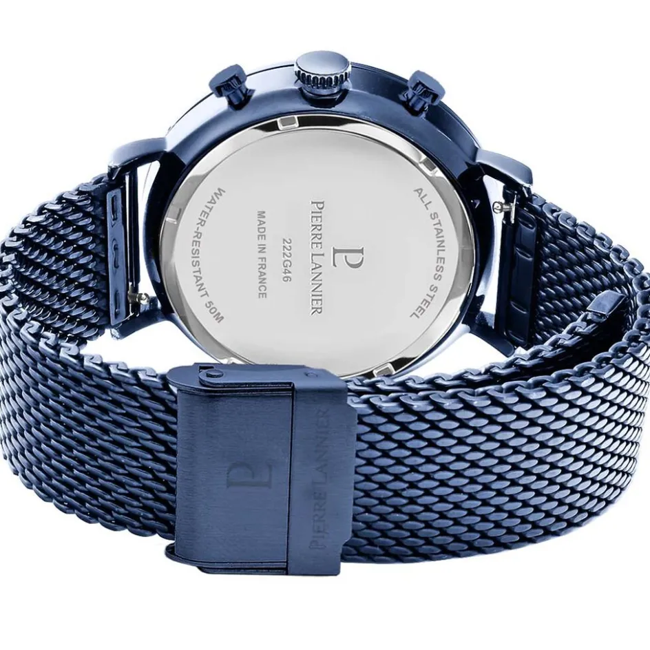Montre Pierre Lannier Baron Acier Bleu Ronde Quartz Multifonction 43mm Fond Bleu Bracelet Acier Bleu Maille Milanaise 222g469