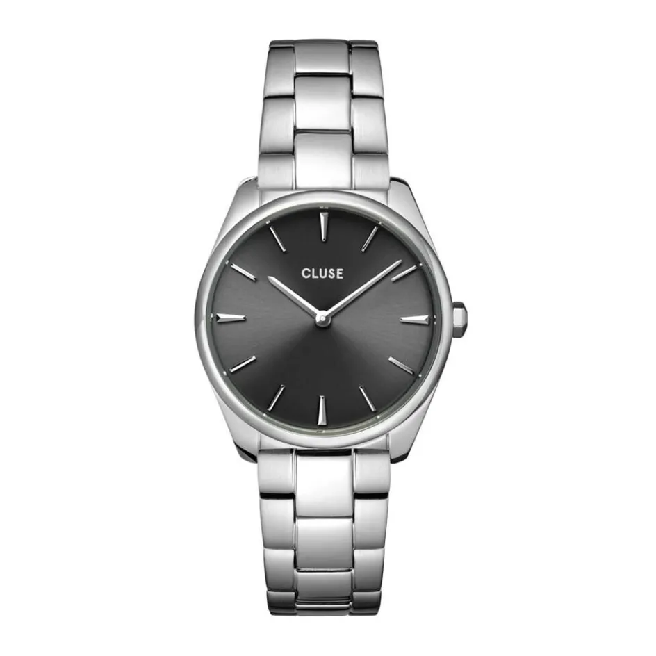 Montre Cluse Feroce Petite Acier Blanc Ronde Quartz 31.5mm Fond Gris Bracelet Acier Cw11202