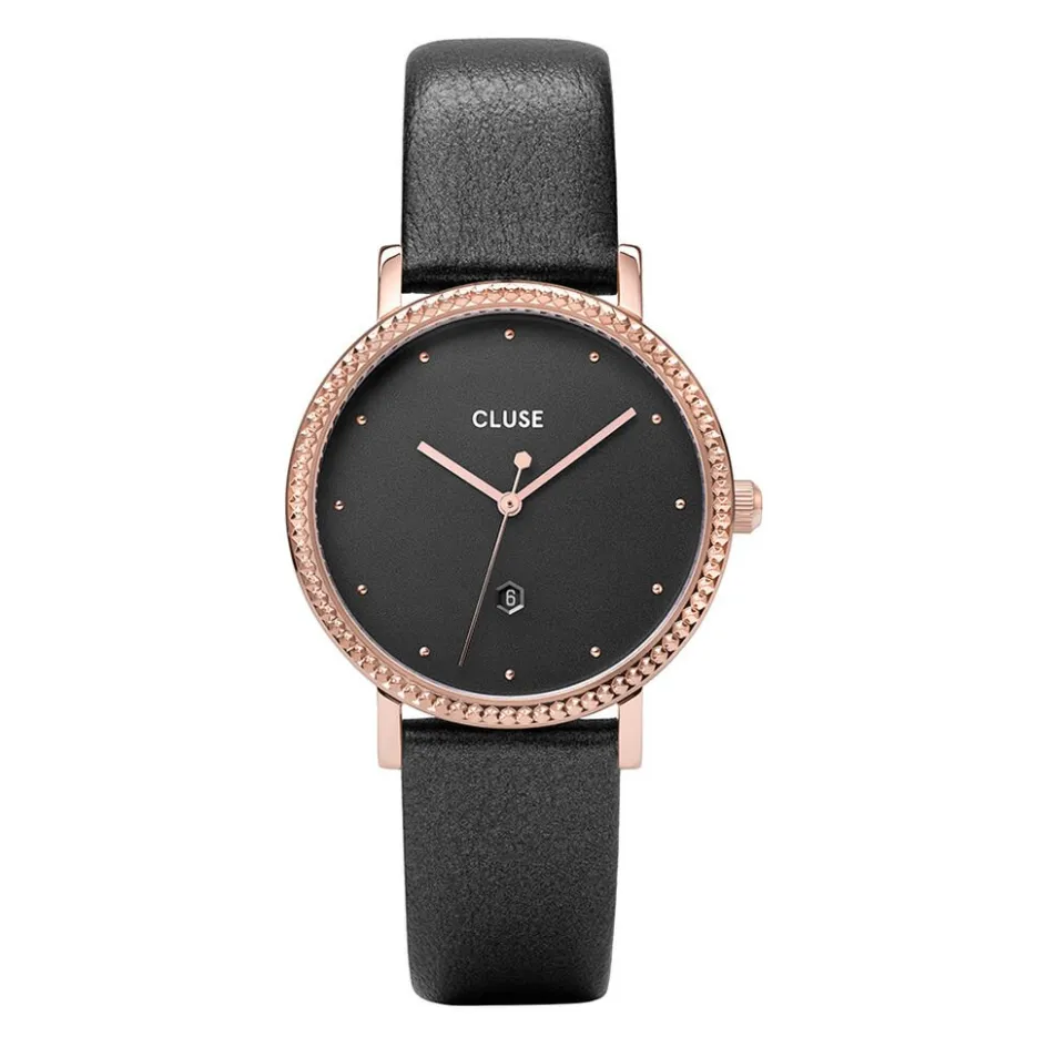 Montre Cluse Le Couronnement Acier Dore Ronde Quartz 33mm Fond Gris Bracelet Cuir Gris Cw0101209007