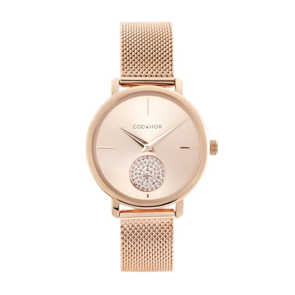 Montre Codhor Amele Alliage Doré Rose Ronde Quartz 36mm Fond Doré Rose Bracelet Milanais Acier Doré Rose P100964-c