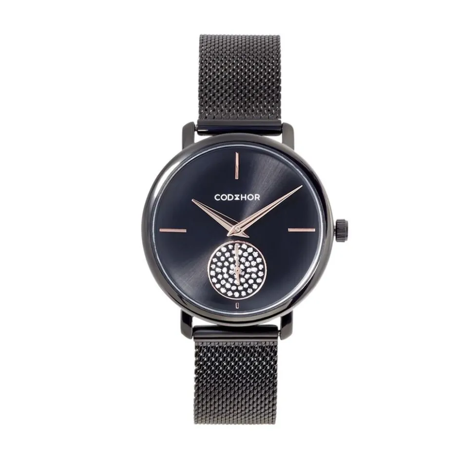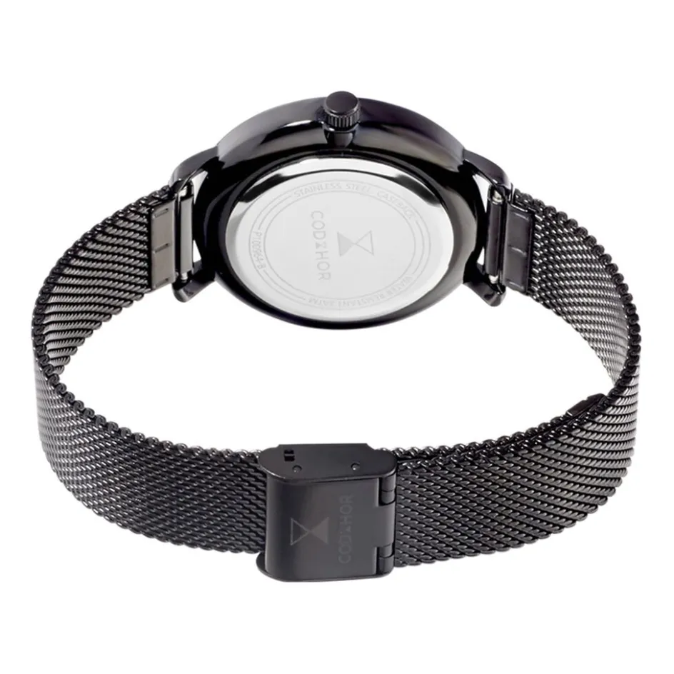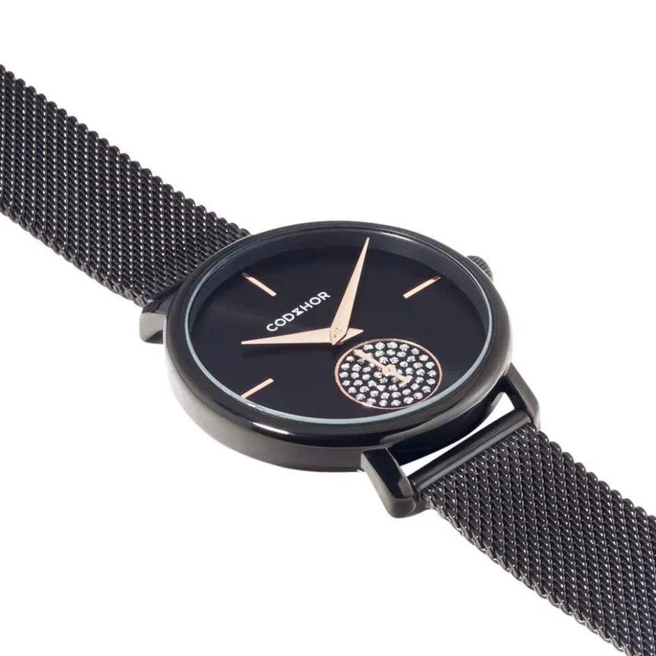 Montre Codhor Amele Alliage Noir Rond Quartz 36mm Fond Noir Bracelet Milanais Acier Noir P100964-b