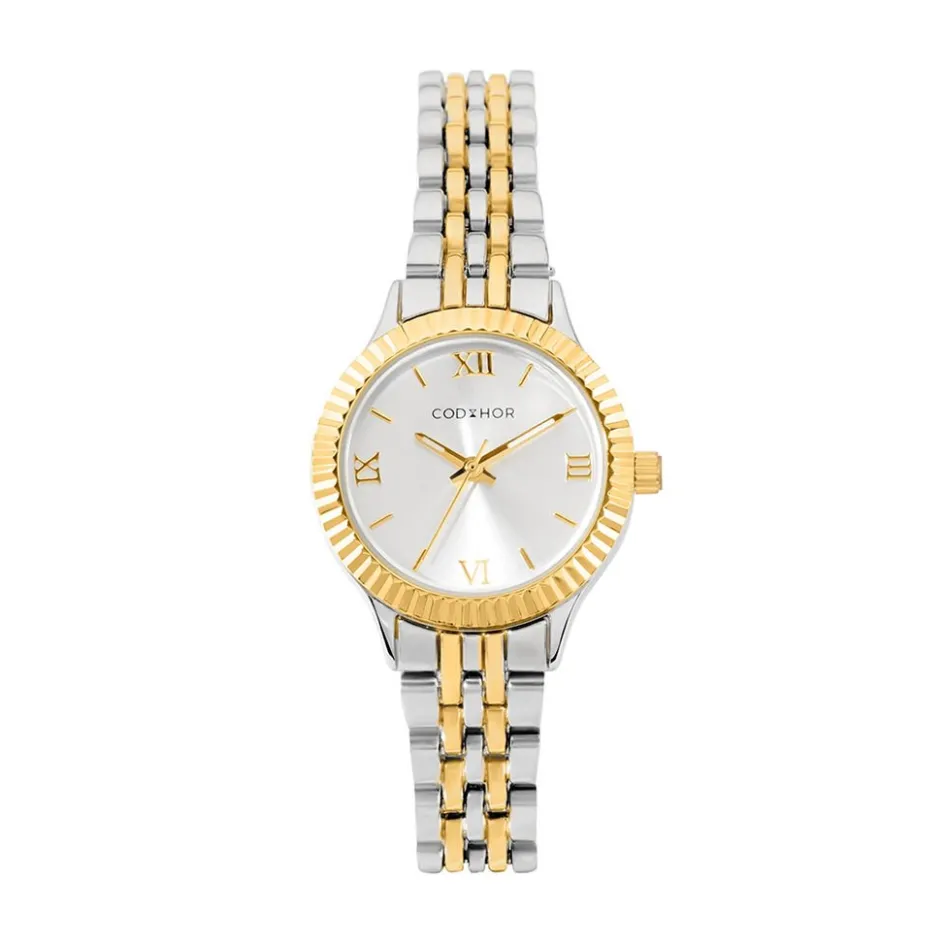 Montre Codhor Isabelle Alliage Doré/blanc Quartz Ronde 26mm Fond Argenté Bracelet Alliage Doré/blanc Wbd0378-002