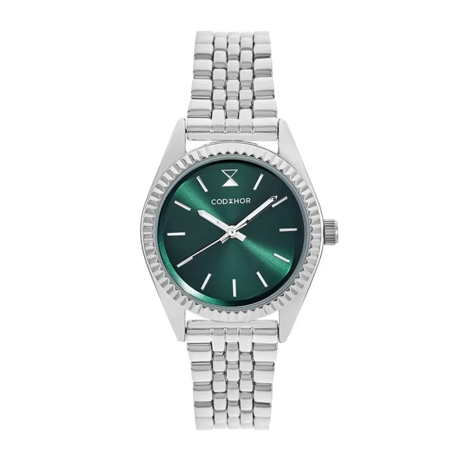 Montre Codhor Sandy Alliage Argente Ronde Quartz 32mm Lunette Crantee Fond Vert Bracelet Alliage Argente Wbc0126-023