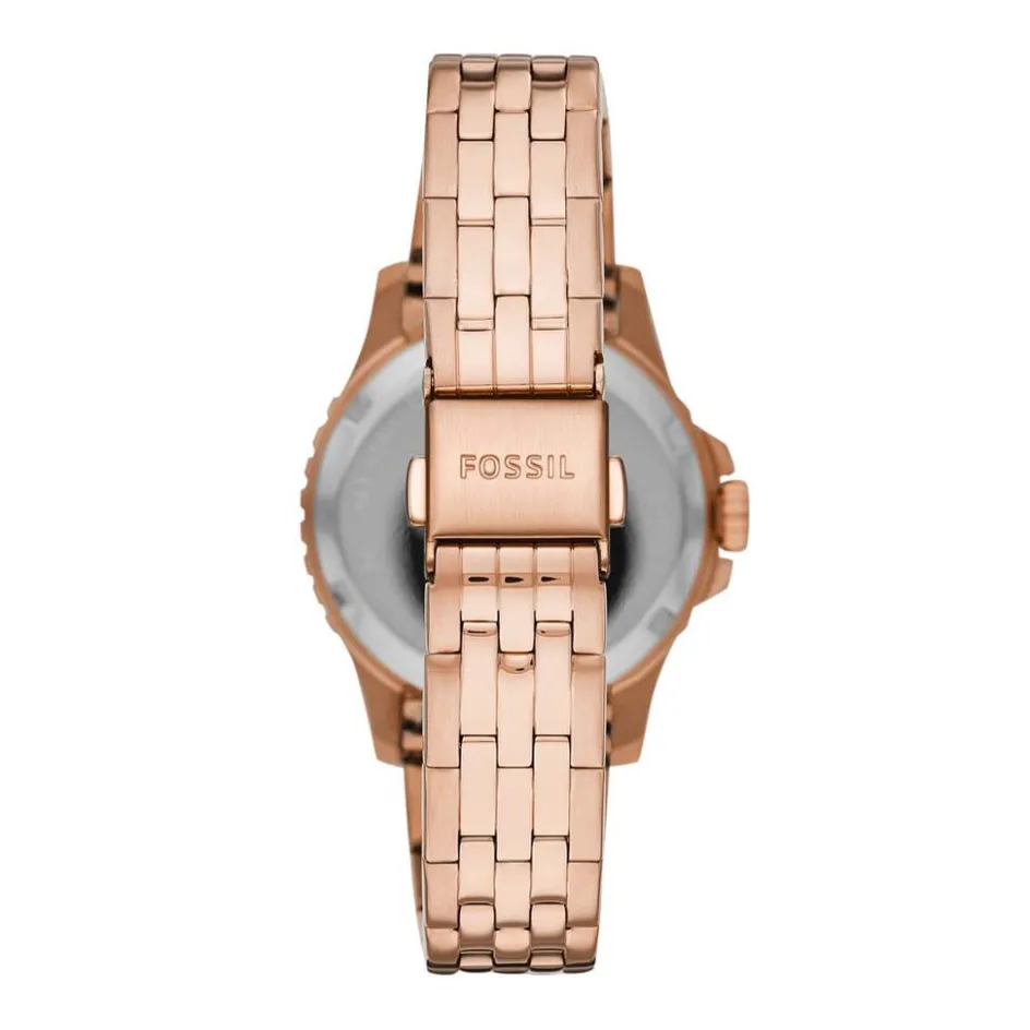 Montre Fossil Fb-01 Acier Dore Ronde Quartz 36mm Fond Bleu Bracelet Acier Rose Es4767