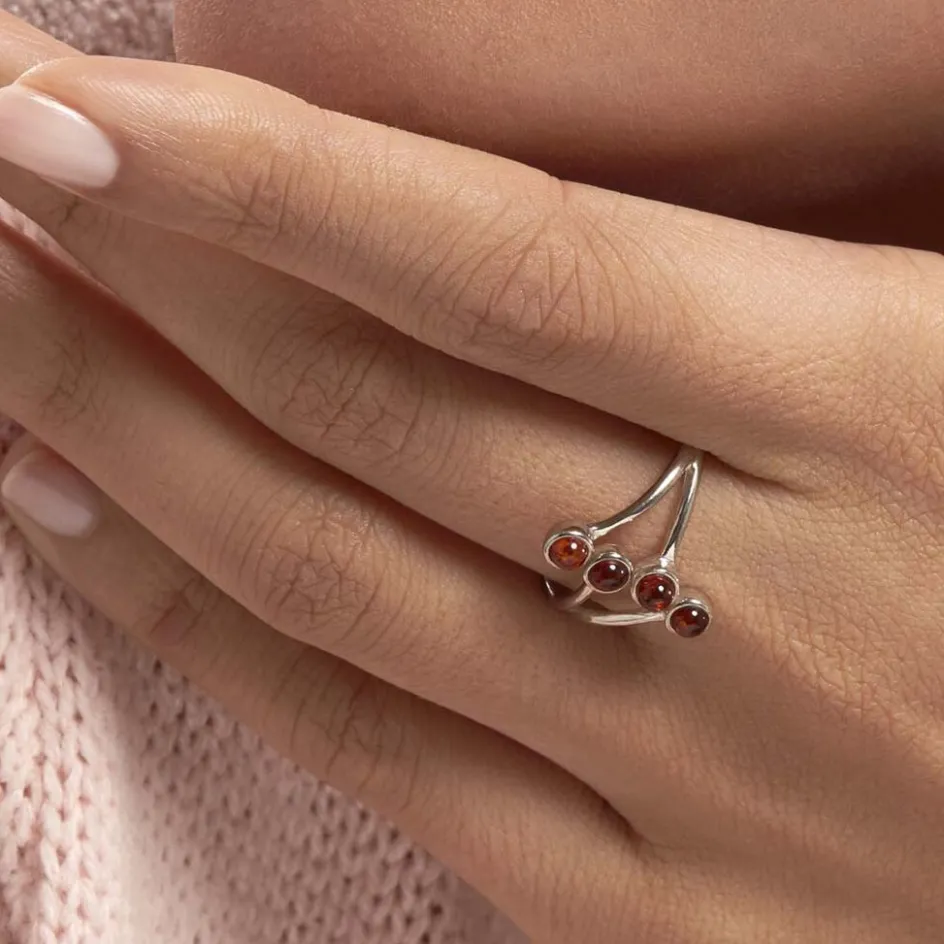 Bague Argent Blanc 925/1000 Billes Ambre Cognac