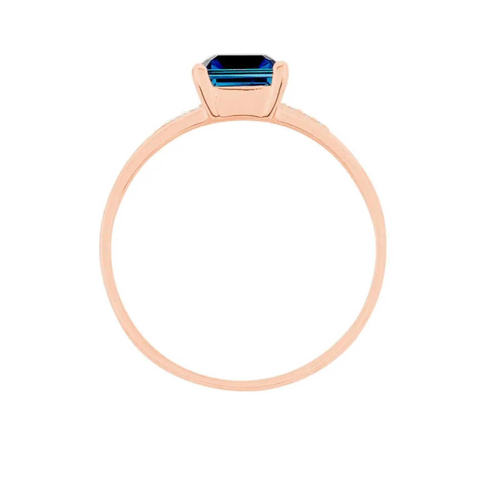 Bague Or Rose 375/1000 Double Rangs Ajoures Topaze London Blue Carree Oxydes De Zirconium