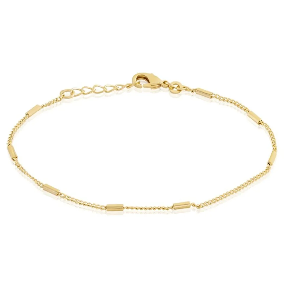 Bracelet Plaque Or Jaune Maille Forcat Barrettes Largeur 1.5mm 18cm