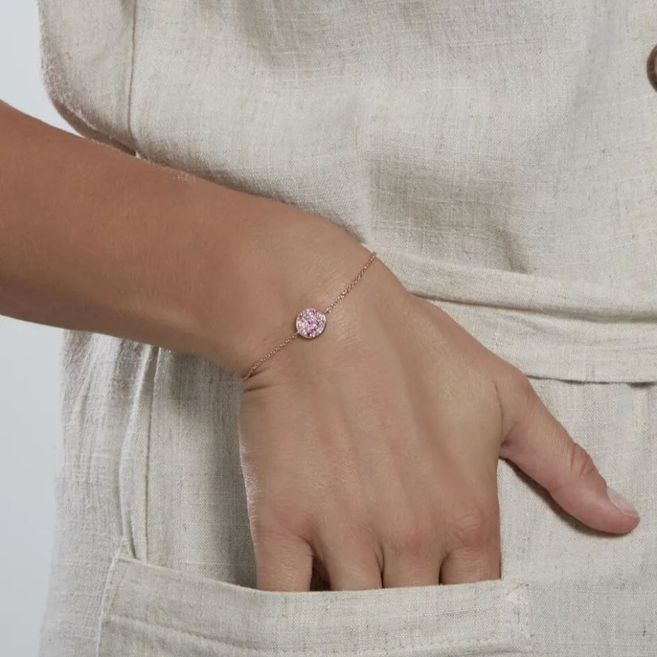 Bracelet Argent Rose 925/1000 Pastille Camaieu Rose Micro Setting Oxydes De Zirconium Maille Forçat 18.5cm