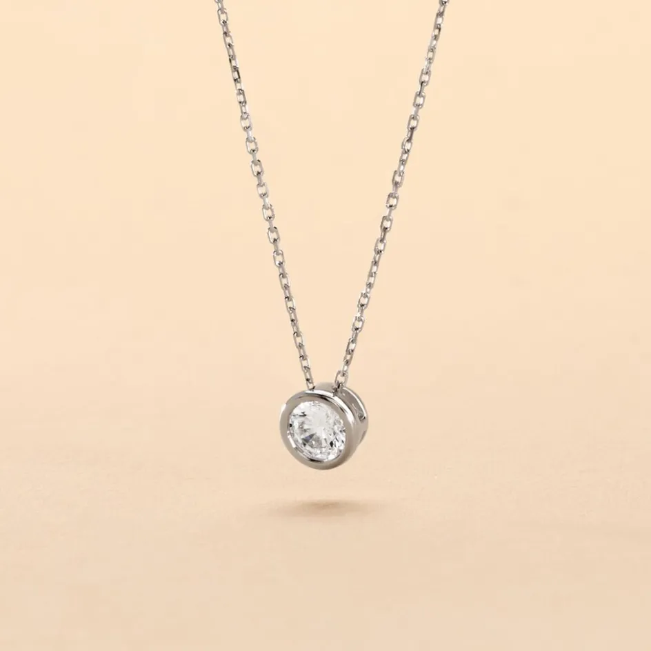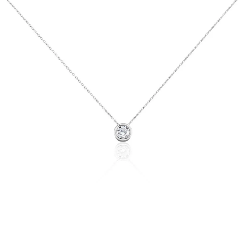 Collier Or Blanc 375/1000 Oxyde De Zirconium Serti Clos 0.45cts Maille Forçat 42cm